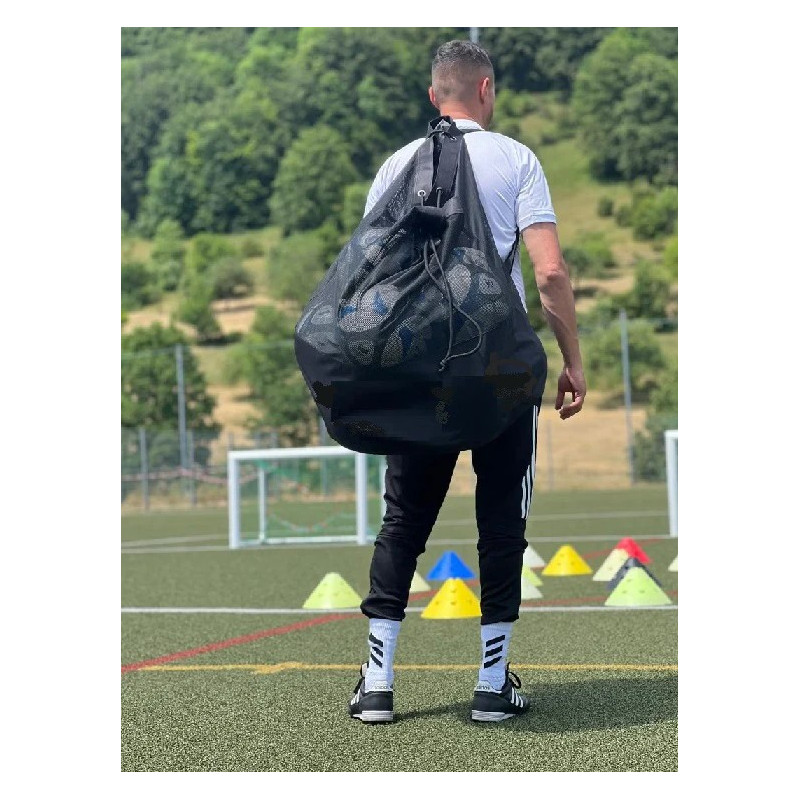T-PRO bumbu soma-mugursoma, kas izgatavota no neplīstoša materiāla. Divas piestiprinātās plecu siksnas ļauj ērti pārnēsāt bumbu somu uz muguras. Integrētā aukliņas aizdare atvieglo piekļuvi bumbām un to uzglabāšanu treniņu laikā. Somas neplīstošais sieta materiāls un ar PU pārklātā pamatne nodrošina optimālus apstākļus un izturību bumbu pārvadāšanai jebkuros laika apstākļos.